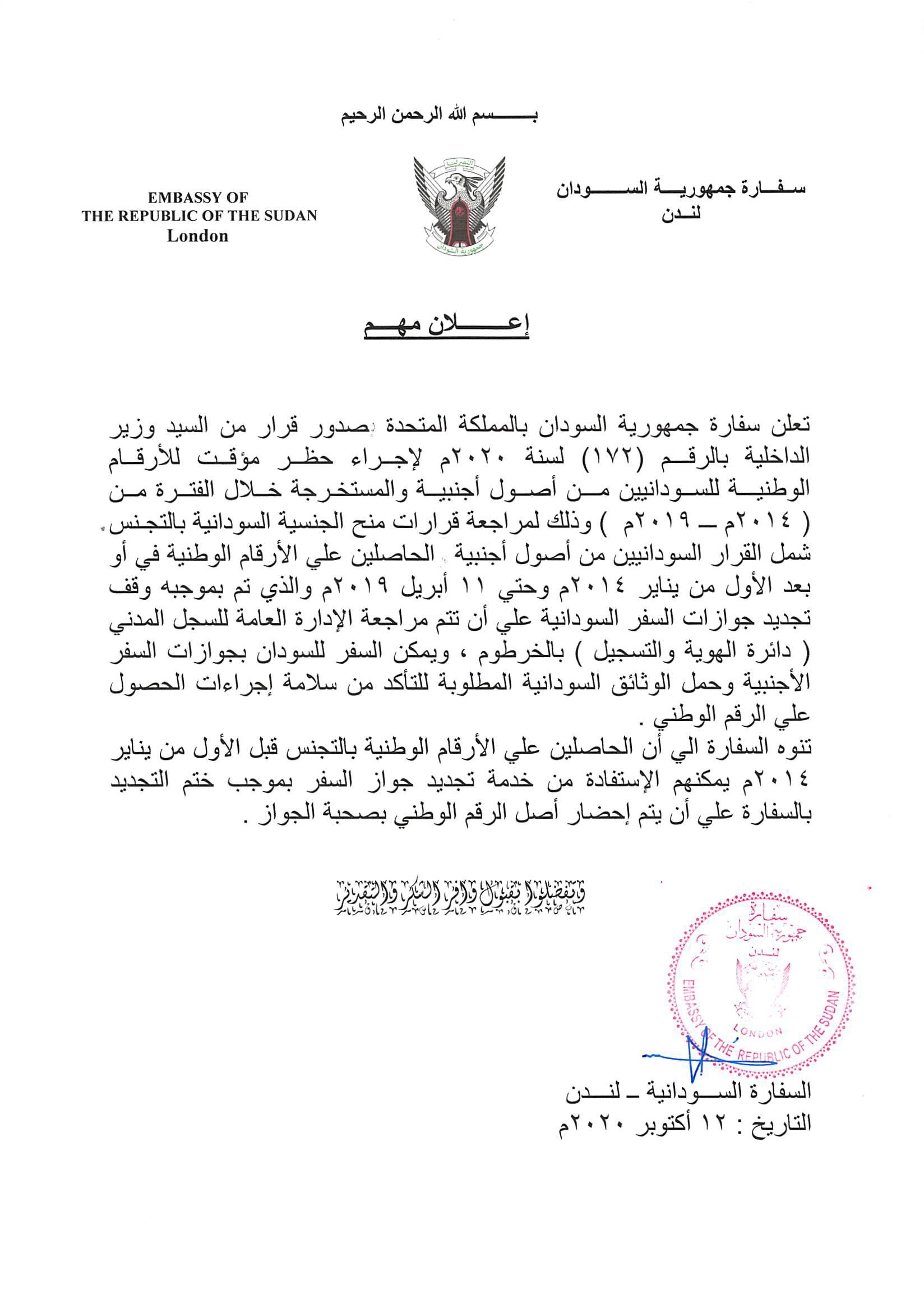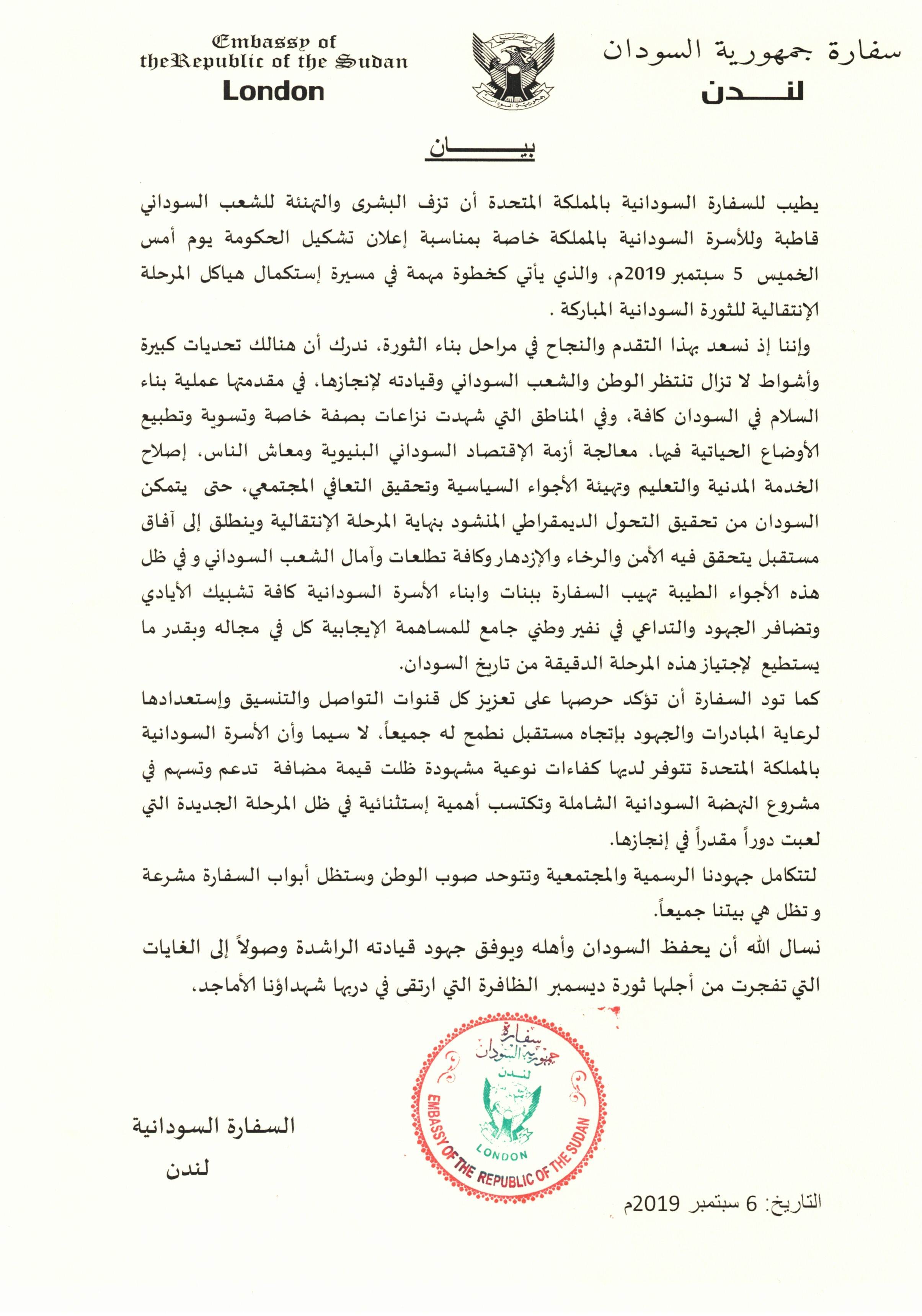 The Sudanese Embassy in London A Short History of a Long and enduring Friendship Sudan declared independence peacefully after a vote in parliament on 19 December 1955 .